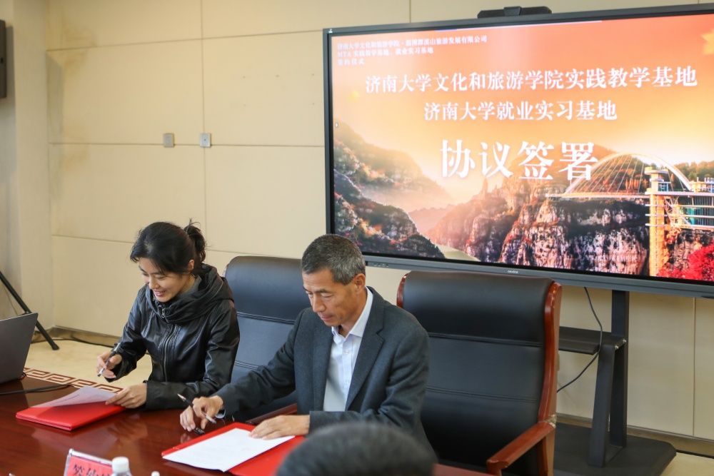 为进一步加强校企交流合作,推进理论和实践的有效结合,共同培养适应社会需求的高素质人才。10月19日,文化和旅游学院党委书记孟德洋、研究生院副院长杨立洁、文化和旅游学院相关领导一行前往淄博市走访调研,并与淄博潭溪山旅游发展有限公司签订共建best365官网中文版登录MTA实践教学基地和就业实习基地合作协议,并举行签约揭牌仪式。淄川区人大常委会副主任李洁,淄川区文化和旅游局党组书记、局长刘峰,淄川区太河镇党委书记张雷,淄川区文化和旅游局党组成员、区旅游中心主任田宝,淄川区太河镇党委副书记耿龙,淄博潭溪山旅游发展有限公司执行董事长侯俊峰,淄博潭溪山旅游发展有限公司营销总监崔新程等参加会议。