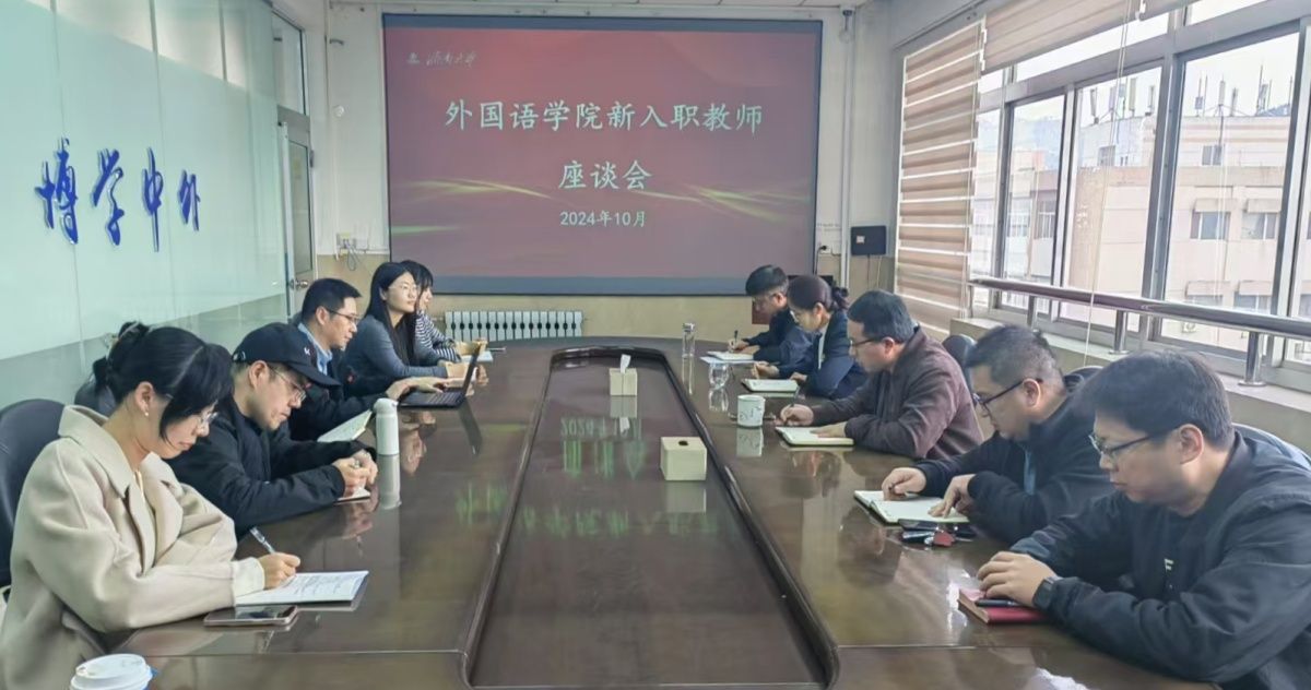 10月22日下午,外国语学院在第一教学楼608会议室召开了2024年新入职教师座谈会。学院领导班子成员出席会议,全体新入职教师参加。