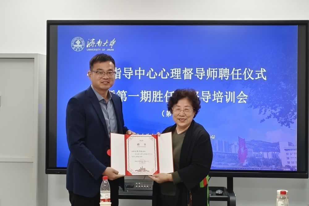 聘任仪式上,张晶介绍了学校正在打造的“校家社”协同背景下心理健康教育“3455”工作体系,并对学校心理咨询工作重点介绍,强调心理专职教师心理咨询胜任能力及其常态化督导培训对学校心理健康体系的支撑作用,建议团队成员用好专家资源,持续学习,久久为功,不断提升心理咨询专业技能。随后,张晶代表学校为吴少怡教授颁发心理督导师聘书。
