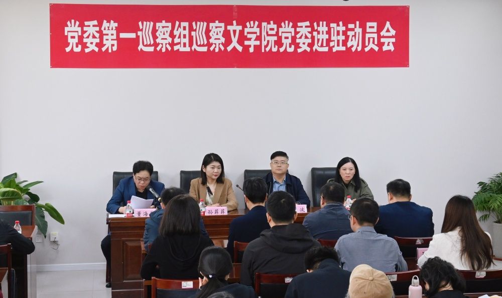 按照学校党委巡察工作统一部署,10月29日,党委第一巡察组巡察文学院党委进驻动员会在3教418会议室召开。党委巡察工作领导小组成员、纪委副书记孙菲菲,党委第一巡察组组长、党委巡察办主任丁立波及巡察组全体成员出席了会议,学院领导班子成员、全体教职工和部分学生代表参加了会议。会议由文学院党委书记董海军主持。