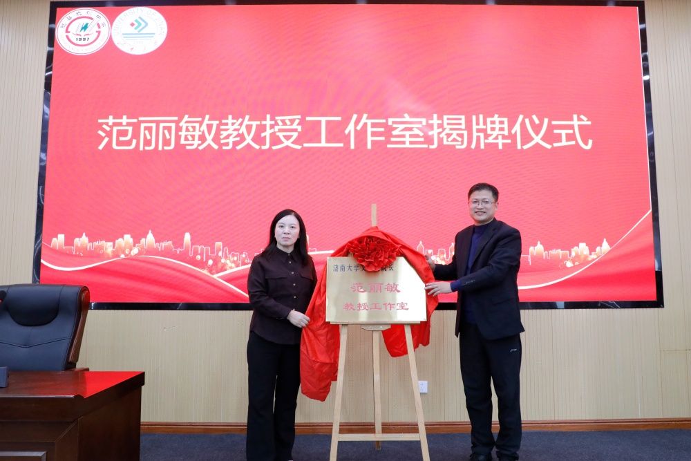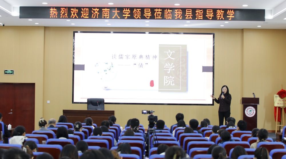 紧接着,武训中学举行研究生实践基地揭牌仪式,由范丽敏为武训中学研究生实践基地挂牌。张志全向王彦林、王连军、牛安明三位老师颁发研究生校外合作导师聘书。武训中学为范丽敏授“范丽敏教授工作室”牌。随后,范丽敏为冠县全体中学骨干语文教师作报告,主题为《谈儒家原典精神——“情”》,以中学教育必读经典——《红楼梦》为例,对其思想内涵进行深度解析,对贾宝玉的形象进行详细解读,受到现场师生的热烈欢迎。