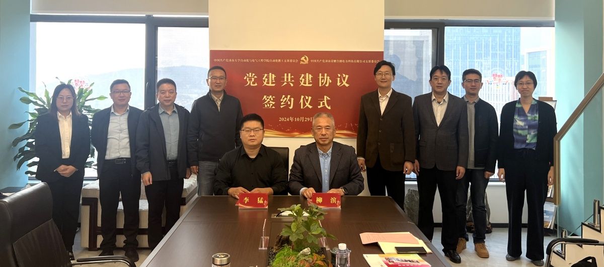 10月29日,在济南荣耀合创电力科技有限公司,自动化教工党支部与济南荣耀合创电力科技有限公司党支部举行党建共建签约仪式。学院党委书记李祥印、院长申涛、自动化教工党支部书记李猛,荣耀合创公司总经理魏欣、副总经理王秀广、党支部书记柳滨等参加签约仪式。荣耀合创电力科技有限公司党支部书记柳滨主持签约仪式。