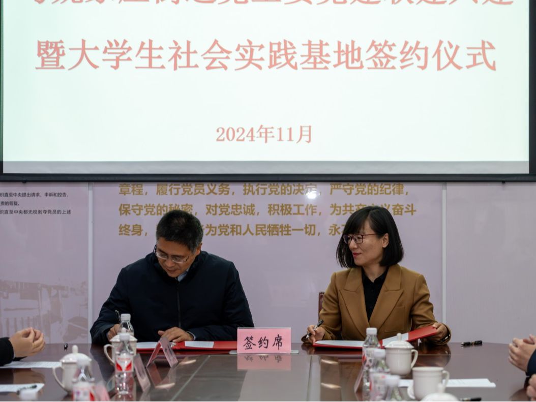 随后,夏卫东与徐昕签订《党建联建共建合作协议书》,郝伟与夏定军签订《大学生社会实践基地协议》。续铁和徐昕共同为“党建联建共建基地”揭牌,夏卫东和党淼共同为“大学生社会实践基地”揭牌。
