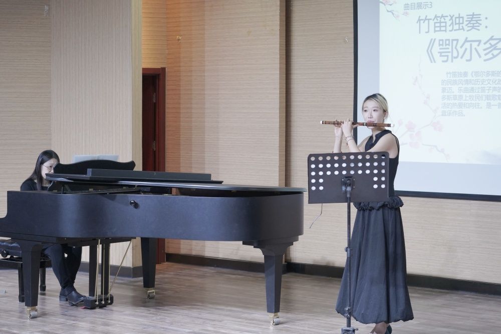 本场讲演会由音乐学院闵小敏副教授担任钢琴艺术指导,李展副教授担任导聆。讲演会区别于传统的竹笛演奏会,特别设置了导赏讲解环节,由讲师引领听众初步领略每首曲目的意境与情感,随后再进行竹笛演奏的欣赏。这一环节不仅增添了内容的丰富性和趣味性,还与随后展开的精湛演奏相得益彰,共同为观众呈现了一场别具一格的视听享受。