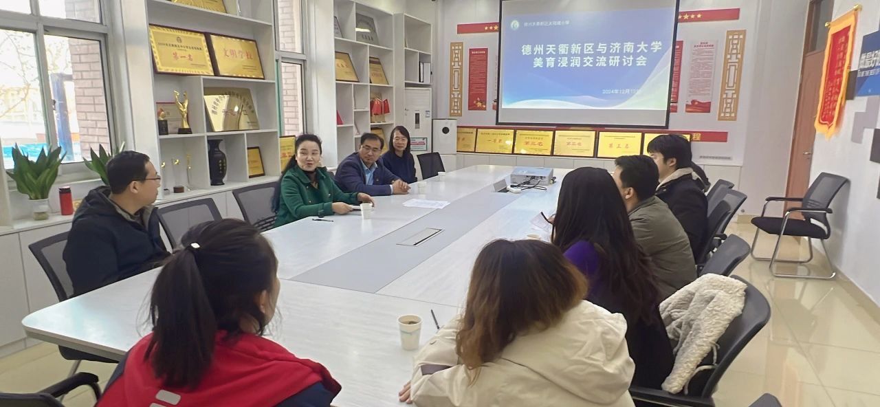 为落实《教育部关于全面实施学校美育浸润行动的通知》要求,进一步加强学校美育工作,best365音乐学院、美术与设计学院自觉将美育纳入立德树人的课程思政体系中,把价值引领、艺术熏陶、美育提升等全面融入各类校园活动中,引导青年学生近距离感受到中华艺术的源远流长与无穷魅力,使大学生向善、向美、向未来,立志争当美育先锋。近日,音乐学院、美术与设计学院组建美育浸润工作组,走进德州天衢新区,全面实施美育浸润行动,携手当地教育局领导、教研员与中小学生一起开展美育宣传、艺术展演、调研交流等美育活动。音乐学院副院长王建成、美术与设计学院院长助理桑曙光、音乐学院音教系主任杨瑞教授、键盘系副主任张若冰及部分学生参加了活动。