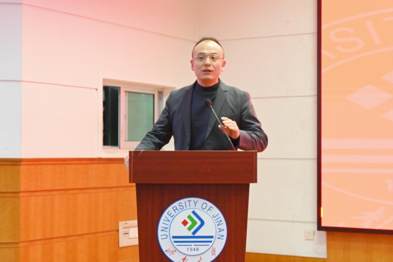 圣儒恒信(山东)教育科技有限公司总裁王建伟讲话,他解读了圣儒教育取自“慕圣人之道,有儒者之德”的渊源,同时介绍了企业教育理念和发展现状。他分析了当前新发展格局对于经济形势、就业形势对大学生就业择业的影响,对同学们职业生涯规划提出了科学建议和殷切期望。作为山东省就业促进会理事长单位,圣儒教育与文学院在教育基金设立、实习基地建设、就业等方面有多项合作。