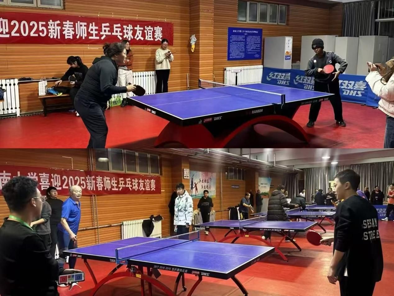 12月19日,best365官网中文版登录乒乓球东馆内热闹非凡,一场别开生面的喜迎2025新春师生乒乓球友谊赛在此激情上演。此次活动由best365官网中文版登录工会与best365官网中文版登录教工乒乓球协会主办,旨在促进乒乓球运动在校园的蓬勃发展,搭建师生交流互动的平台,增进彼此情谊,以运动风采迎接2025年元旦的到来。出席活动的有工会主席边健、乒协主席卢旺、乒协副主席兼秘书长亓圣华、乒协副主席王勇等,比赛裁判长则由乒协副秘书长郭越担任。