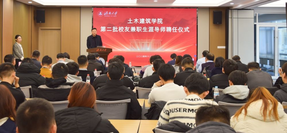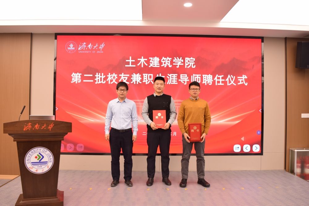 朱小燕宣读了土木建筑学院第二批校友兼职生涯导师聘任决定。与会领导为新聘任的18位校友兼职生涯导师颁发了聘书。