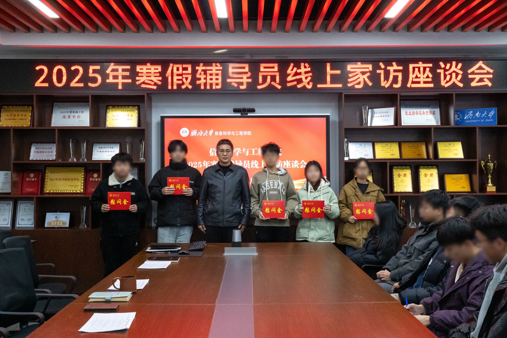 为围绕立德树人根本任务,进一步落实精准资助政策,扎实做好寒假家访工作,充分发挥各方优势、密切配合、相互支持,形成家校合力,共同关心学生生活、关注学生成长,1月7日下午,信息科学与工程学院在12教704召开了2025年寒假家访座谈会,通过腾讯会议、视频电话等方式与多名省外重点资助学生及家长进行线上交流,为受助学生家庭送去温暖和祝福。学院党政领导班子成员、全体学工人员、班主任代表以及部分学生及家长代表参与此次会议,会议由学院党委副书记、副院长郝伟主持。