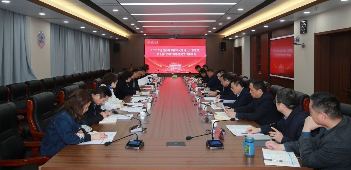 3月19日,学校召开2025年全国高校运动训练、武术与民族传统体育专业招生文化考试(山东考区)(以下简称体育单招文化课考试)和第75次全国计算机等级考试best365官网中文版登录考点工作协调会。学校党委常委、副校长王霞出席会议并讲话,相关部门负责人参加会议。会议由教务处处长陈贞翔主持。