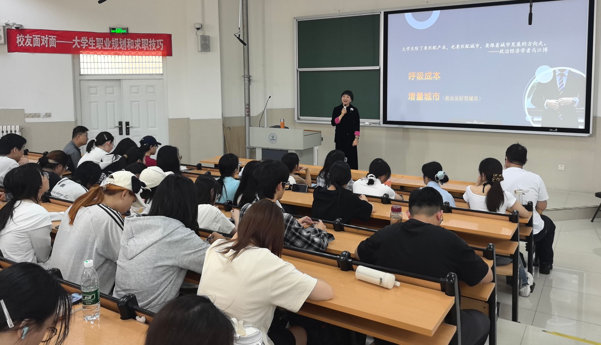 讲座伊始,刘娉娉以"从校园到职场"为主题,结合自身丰富的职业经历,从如何选择第一份工作、如何应对面试、入职后的适应锦囊三个部分,为同学们详细讲解了职业规划的方法与技巧。在城市选择方面,刘娉娉提出要重点关注“增量城市”,建议同学们从人口净流入、头部企业分布、政策支持力度等指标进行综合考量。在行业分析环节,她系统讲解了不同行业生命周期的特点,帮助同学们把握行业发展规律。针对企业选择,她创新性地提出了“四维评估法”,建议同学们从战略地位、成长空间、岗位价值和晋升通道四个维度进行全面评估。在求职技巧分享环节,刘娉娉重点讲解了简历制作、面试准备和薪酬谈判三个方面的实用技巧。她强调简历要遵循“一页纸”原则,突出与岗位相关的核心能力;面试前要做好充分准备,包括企业背景调研、常见问题模拟等;薪酬谈判时要注重策略,既要了解市场行情,又要着眼长远发展。