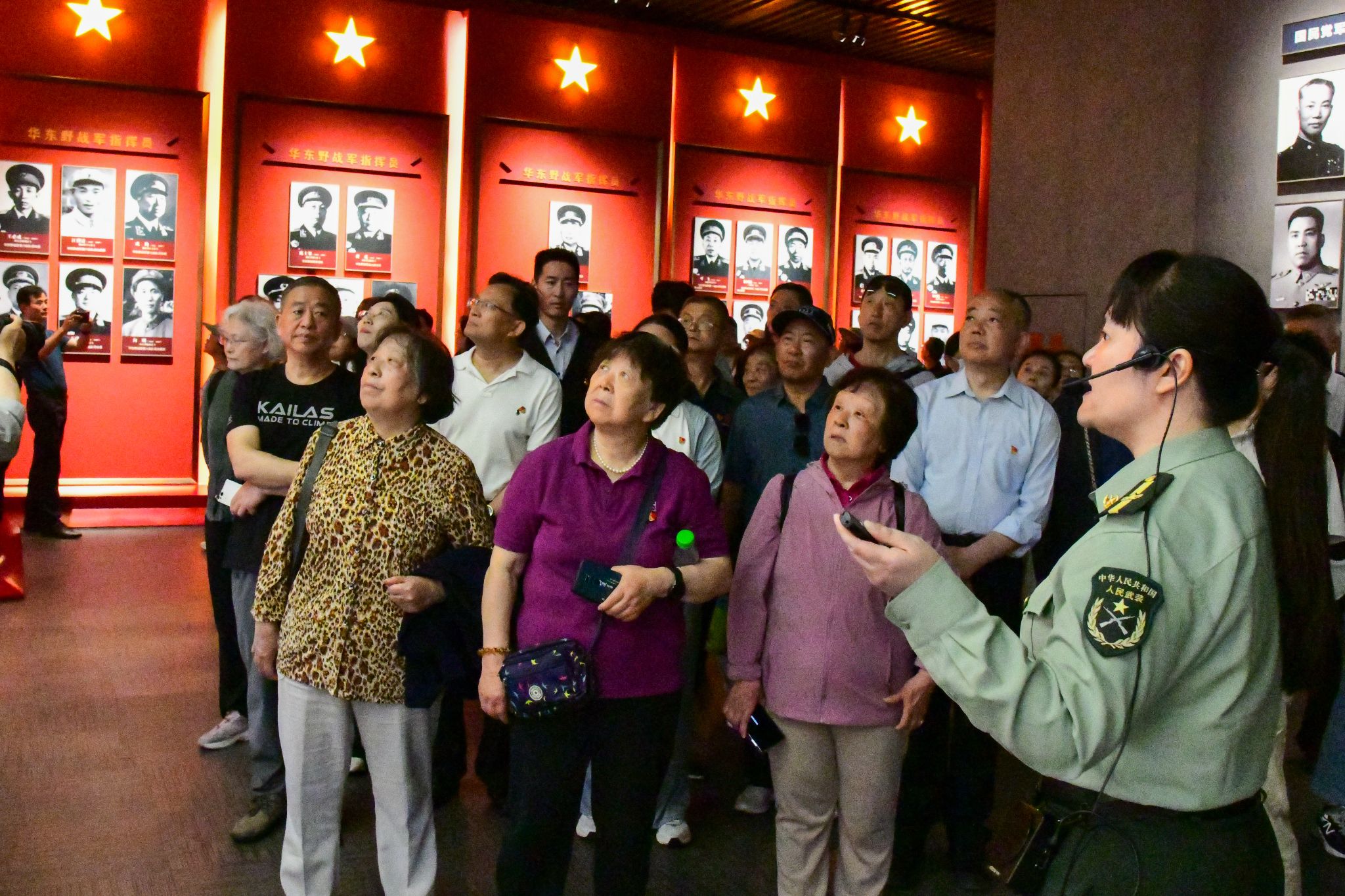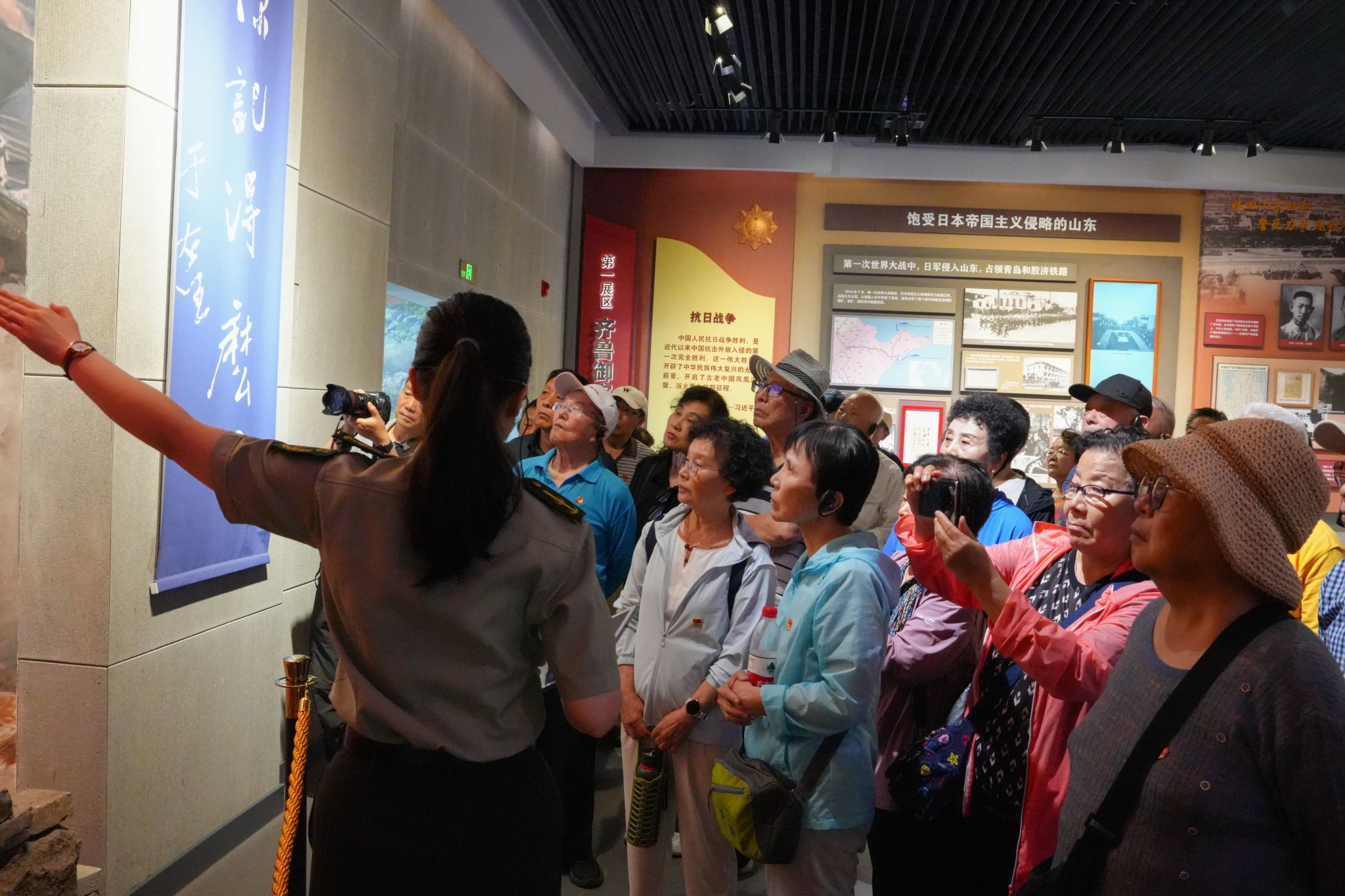 在参观山东老战士纪念广场时,讲解员给老党员们详细讲解了“齐鲁御寇血铸长城”“向北发展向南防御”“雄狮百万转战全国”“北上南下开辟新区”“保家卫国不辱使命”“集体转业再立新功”“沙海女兵戈壁母亲”7个展厅展出的图片、图表、实物等详细内容。通过场景再现和多媒体终端相结合的形式,让老党员同志们深刻了解自抗日战争到新中国成立初期,山东老战士的英雄事迹和伟大的历程。