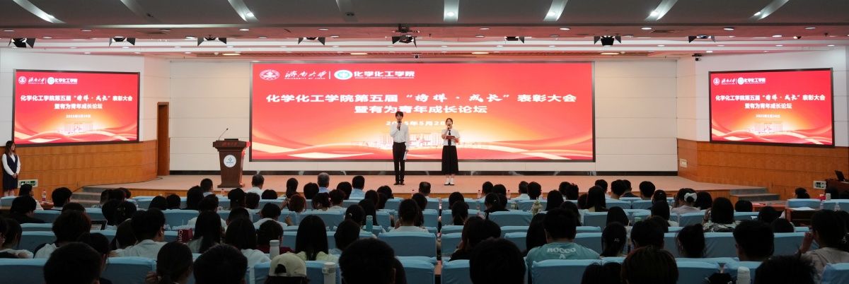 岁月不辍耕耘志,榜样如灯照征程。为进一步营造良好育人氛围,表彰先进典型,发挥榜样引领作用,5月28日,化学化工学院第五届“榜样·成长”表彰大会暨有为青年成长论坛于第一报告厅举行,学校党委副书记张庆国出席活动,党委宣传部、党委学生工作部(处)、教务处、党委研究生工作部、合作发展处、团委、化学化工学院相关负责人,优秀校友代表及师生代表参加活动。