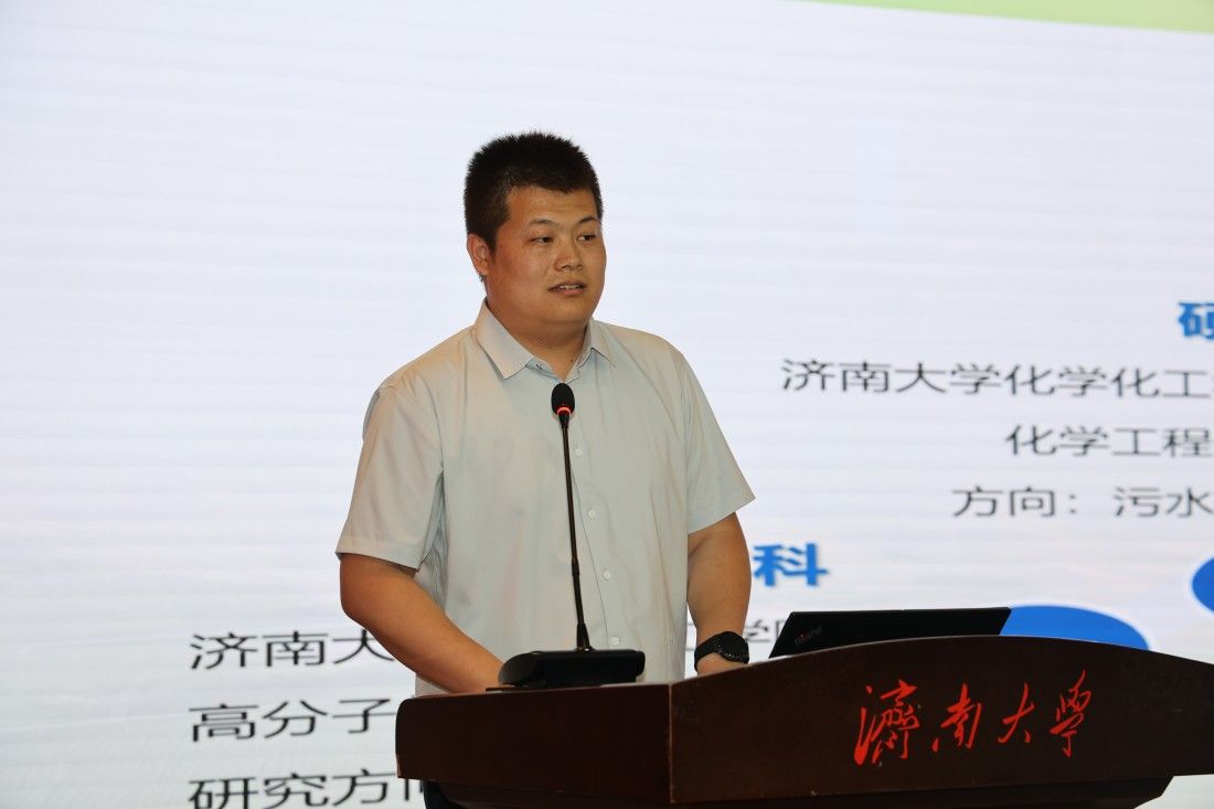 2011届优秀校友、润涵生态科技有限公司董事长、山东泰山产业领军人才、济南市海右产业领军人才、中国治沙暨沙业协会常务理事秦韵涵以《创新·改变世界——先进高分子材料在防沙治沙中的应用》为题讲述了他在治沙技术创新实践方面的心路历程。