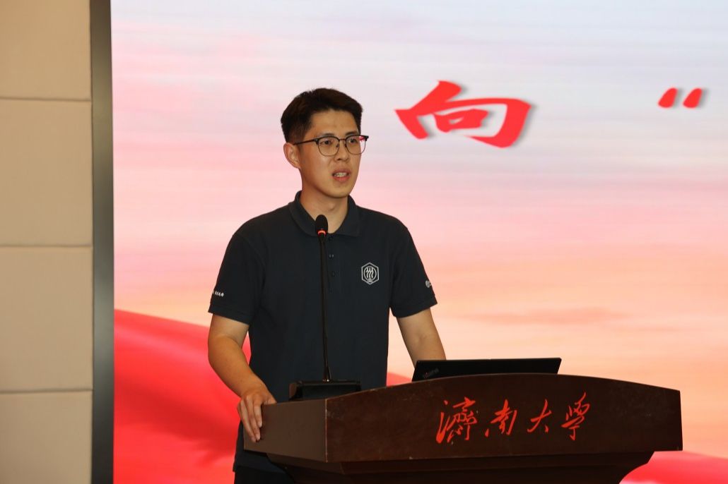 第一届榜样团成员、2021届优秀校友、全国研究生党员标兵尹永跃以《向时代前列奔跑》为题作成长报告,他围绕“探前沿,破难题,科研面向人民需求”“立潮头,动真章,挺膺担当先锋成长”“积跬步,行千里,脚步丈量祖国大地”分享了自己的成长故事与宝贵经验。