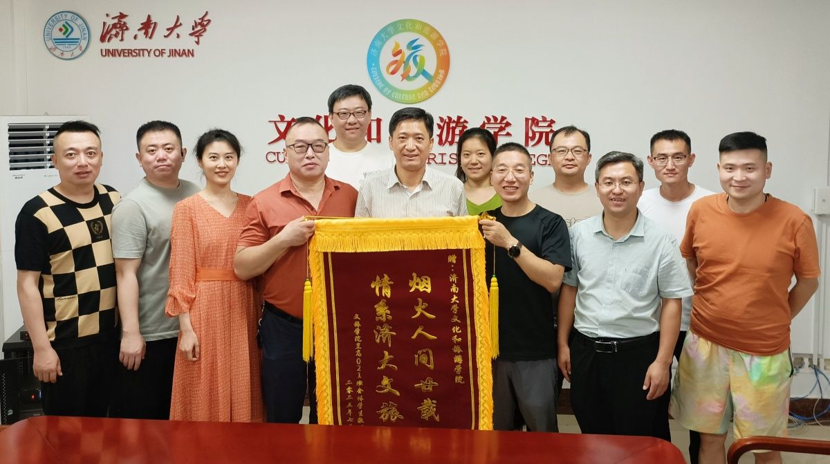 座谈会上,校友们逐一分享了毕业后的工作经历和人生感悟。并向学院赠送了一面写有“烟火人间廿载,情系best365文旅”的锦旗,表达对母校和老师们的感激之情。校友们纷纷表示,无论走到哪里,烹高021班的同学们始终以母校为荣,并将继续关注和支持学院的发展。孟德洋代表学院接受锦旗,并为校友们赠送了学院精心准备的纪念品,希望校友们永远铭记母校的培育之恩,在未来的人生道路上继续砥砺前行。