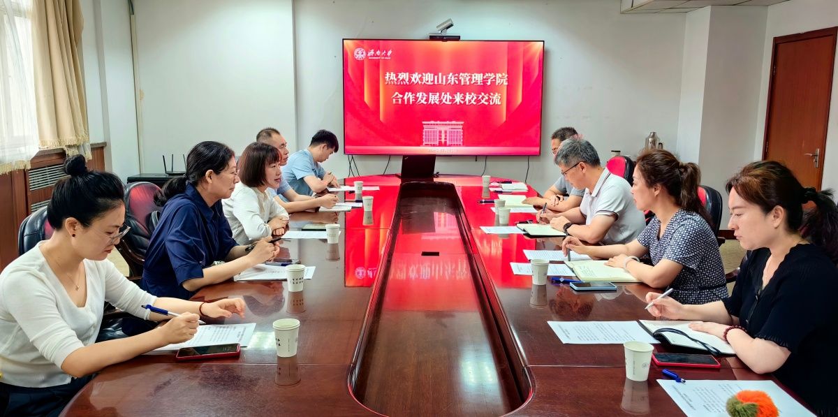 7月15日,山东管理学院合作发展处处长、校友工作办公室主任刘水一行5人来校交流,学校合作发展处相关人员参加座谈会。