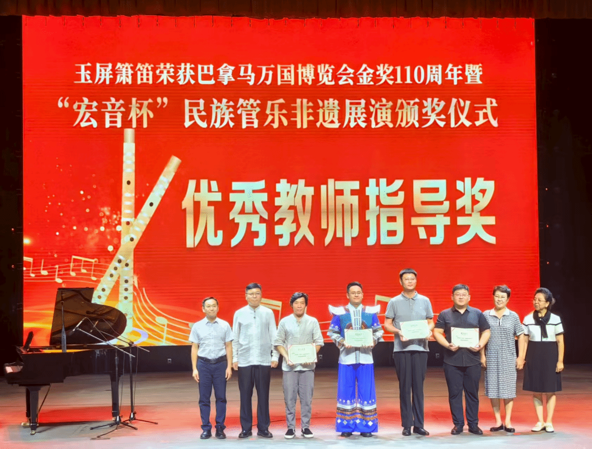 本次非遗展演活动旨在提升公众对传统音乐艺术的认知与鉴赏能力,集中展示贵州笛、箫、笙、唢呐、葫芦丝等传统乐器的独特魅力,同时纪念玉屏箫笛获得巴拿马金奖110周年,为民族音乐文化交流与发展搭建了重要平台。活动内容丰富多元,涵盖民族管乐非遗展演大赛、名家名曲音乐会、大师班及参观体验等环节,吸引了职业组与非职业组众多选手参与,展演乐器包括竹笛、箫、尺八、笙、唢呐、葫芦丝等,汇聚了各高校民乐专业学生及各地民族音乐人才。