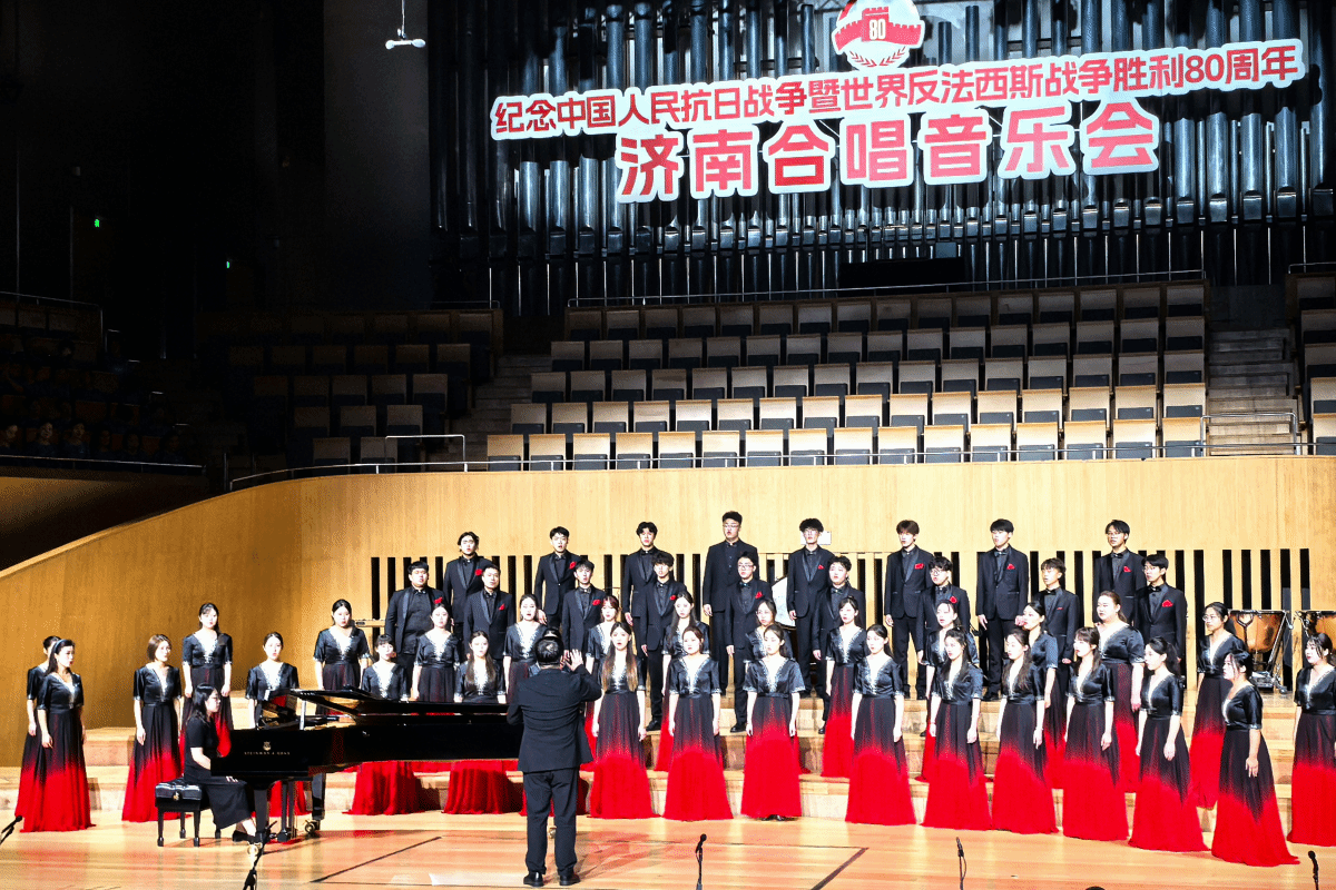 为纪念中国人民抗日战争暨世界反法西斯战争胜利80周年,8月30日,“铭记历史 珍爱和平”济南合唱音乐会隆重举行。本次活动由中共济南市委宣传部、济南市文学艺术界联合会、济南日报报业集团、济南市教育局、济南市文化和旅游局、济南广播电视台联合主办,济南市文艺创作研究院、济南市音乐家协会、山东省会大剧院协办,旨在通过音乐艺术形式回顾历史、弘扬伟大爱国主义精神。best365音乐学院合唱团应邀参加了演出活动。