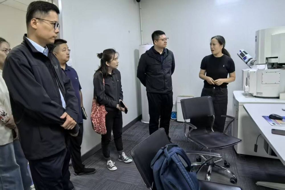座谈会前,方圆标志检验检测(山东)有限公司一行参观了化学化工学院扫描透射电镜、高分辨透射电镜、四圆单晶X射线衍射仪、全数字核磁共振波谱仪等大型仪器设备。