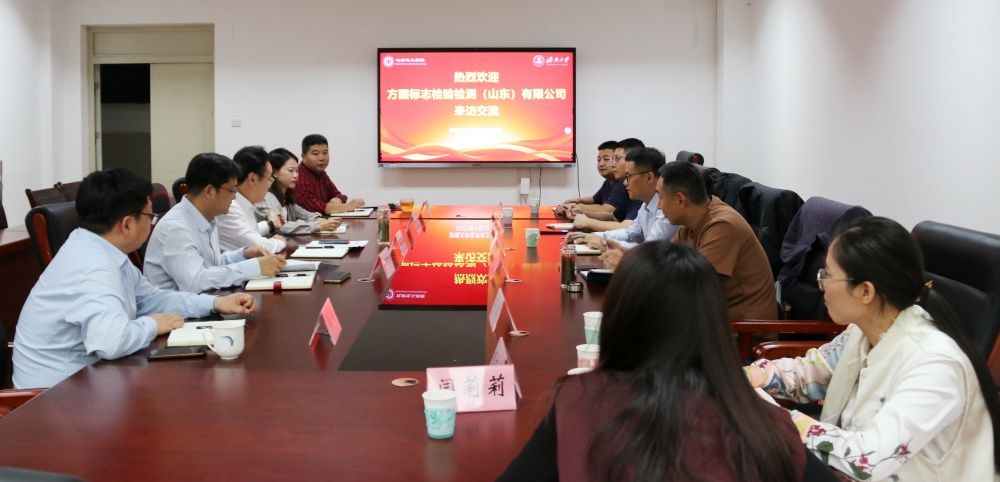 学院党委书记于龙泉对方圆标志检验检测(山东)有限公司一行的到来表示热烈欢迎。期待双方通过座谈交流进一步明确合作内容、拓宽合作领域、创新合作模式,实现“资源共享、优势互补、互利共赢”的美好愿景。