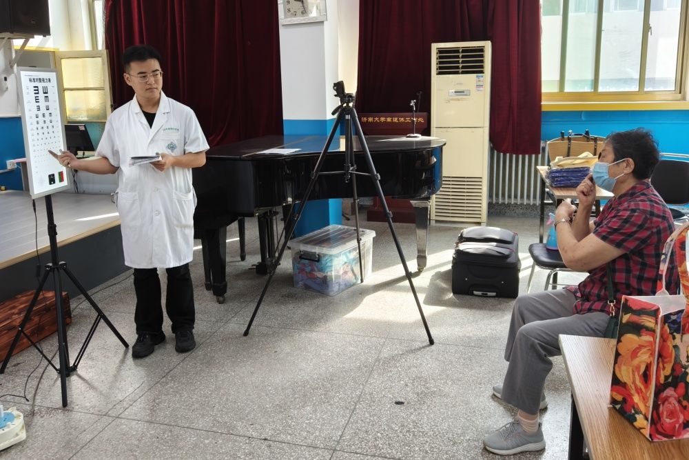 活动现场,专家团队为近百名教职工提供视力检测、裂隙灯检查、眼压诊断等专业项目,重点筛查白内障、青光眼等老年常见眼疾,为10多名符合条件的老同志进行了国家减免治疗政策的讲解与登记,并承诺将提供后续的诊疗指导与服务跟进。此次义诊还为有配镜需求的老同志及在职教师进行了精准验光,成功配制近视镜、远视镜共计30余副,解决了部分教职工的即时视力矫正问题。82岁的李教授在接受检查后感动地说:“学校把三甲医院的专家请到‘家门口’,既节省了往返医院的时间与精力,又让我们这些老同志真切感受到学校的温暖。”