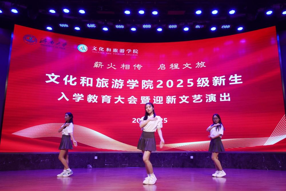 此次“薪火相传 启程文旅”2025级新生入学教育大会暨迎新文艺演出的成功举办,标志着新一届文旅学子大学生活的正式启航。他们将在文化和旅游学院这片广阔的天地中,以梦想为舟,以奋斗为桨,汲取知识,锤炼品格,勇于实践,敢于创新,共同书写新时代文旅人才的绚丽篇章,为服务社会与行业发展贡献青春力量。