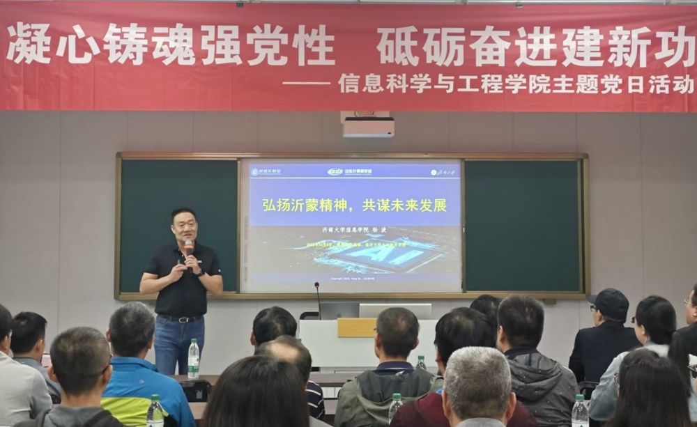 活动期间,学院高度重视党员与教师的思想教育提升,特别邀请杨波教授为全体党员和教师讲授了一堂主题鲜明、内涵深刻的专题党课。党课围绕“弘扬沂蒙精神,共谋未来发展”这一核心议题展开。杨波教授通过生动的案例、翔实的数据,深入剖析了沂蒙精神的丰富内涵与时代价值,同时结合学院实际,探讨了如何传承红色基因,加强作风建设,全力推动学院实现高质量发展。党课内容充实、引人入胜,为大家带来了深刻的思考与启迪。