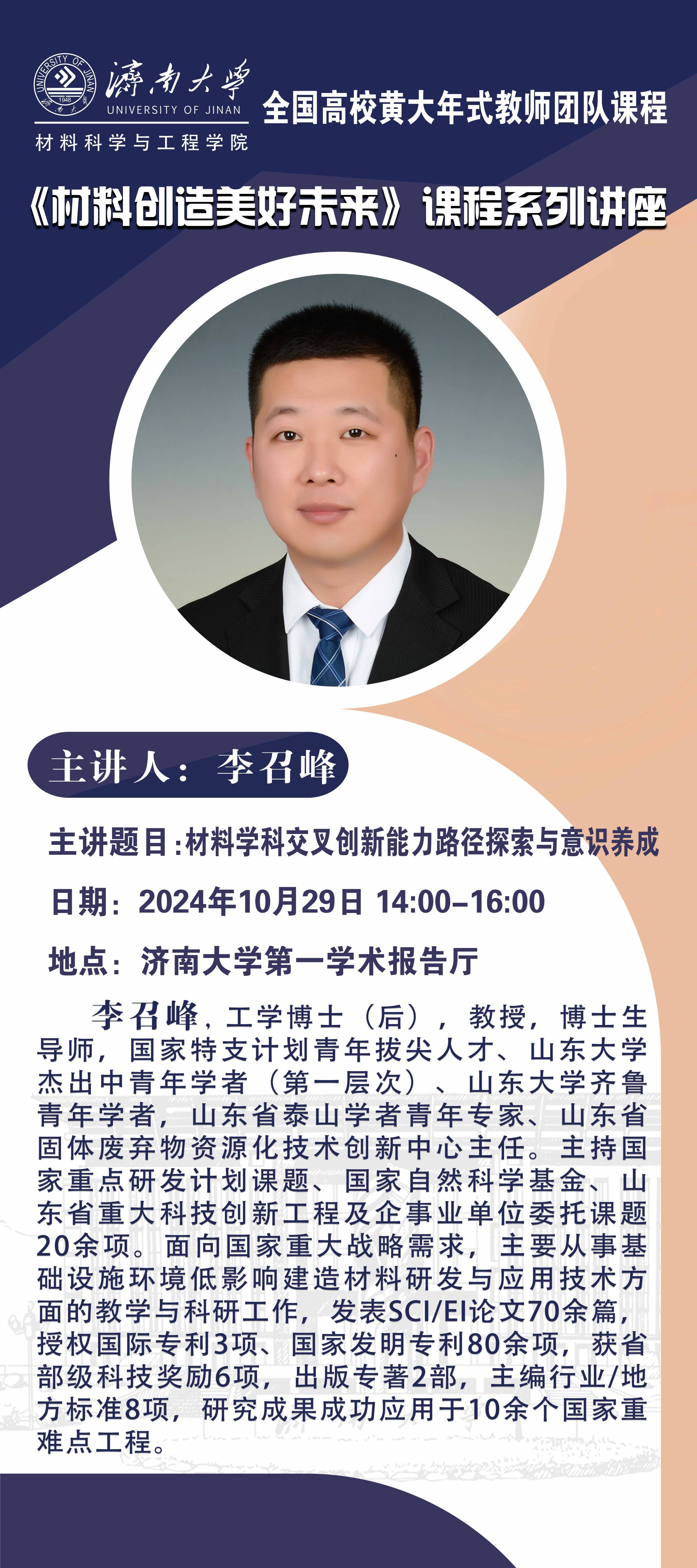 学术海报:全国黄大年式教师团队2024系列课程《材料创造美好未来》第四讲——材料学科交叉创新能力路径探索与意识养成