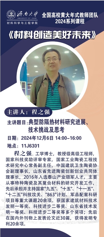 学术海报:全国黄大年式教师团队2024系列课程《材料创造美好未来》第七讲