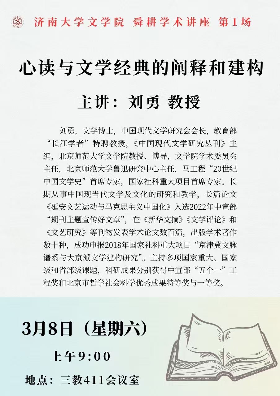文学院舜耕学术系列讲座——心读与文学经典的阐释和建构