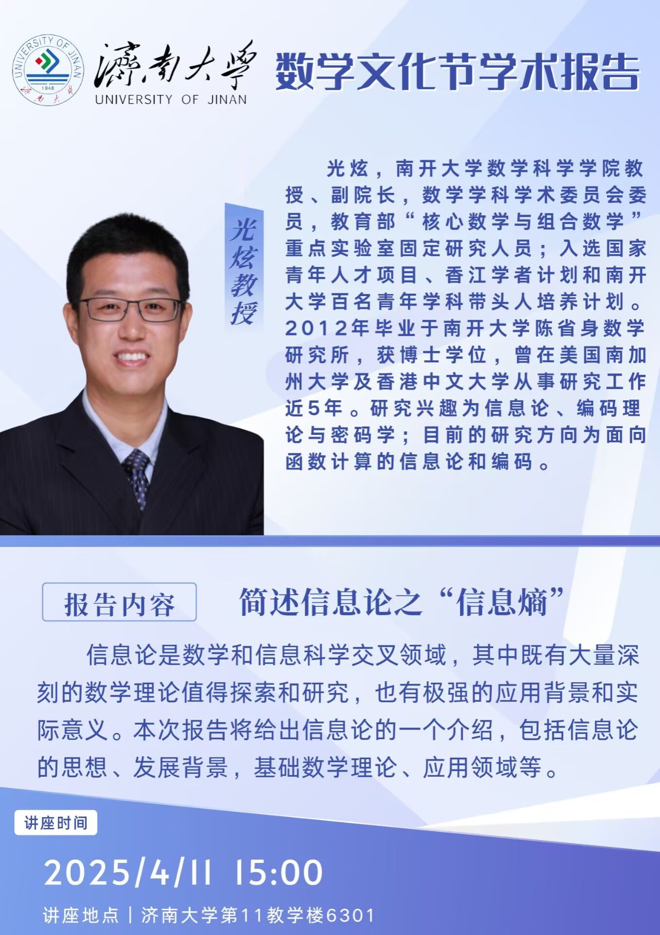 首届数学文化节学术报告:简述信息论之“信息熵”