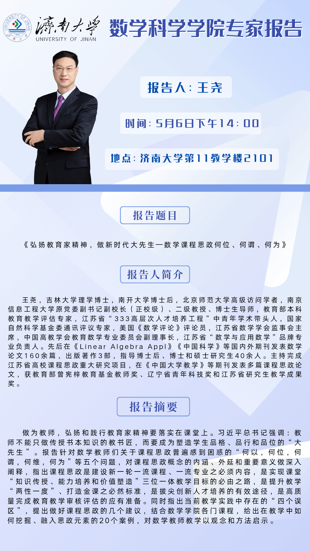 数学科学学院专家报告:弘扬教育家精神,做新时代大先生—数学课程思政何位、何谓、何为