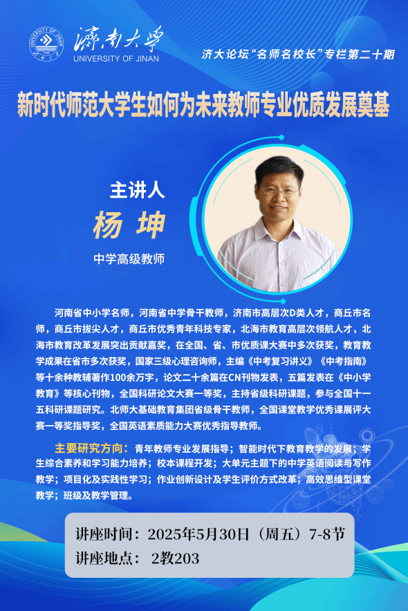 高等教育本科教学成果奖凝练与申报专题报告会(第二期)预告:理念·举措:持续实践·用心总结——教学成果奖培育思考