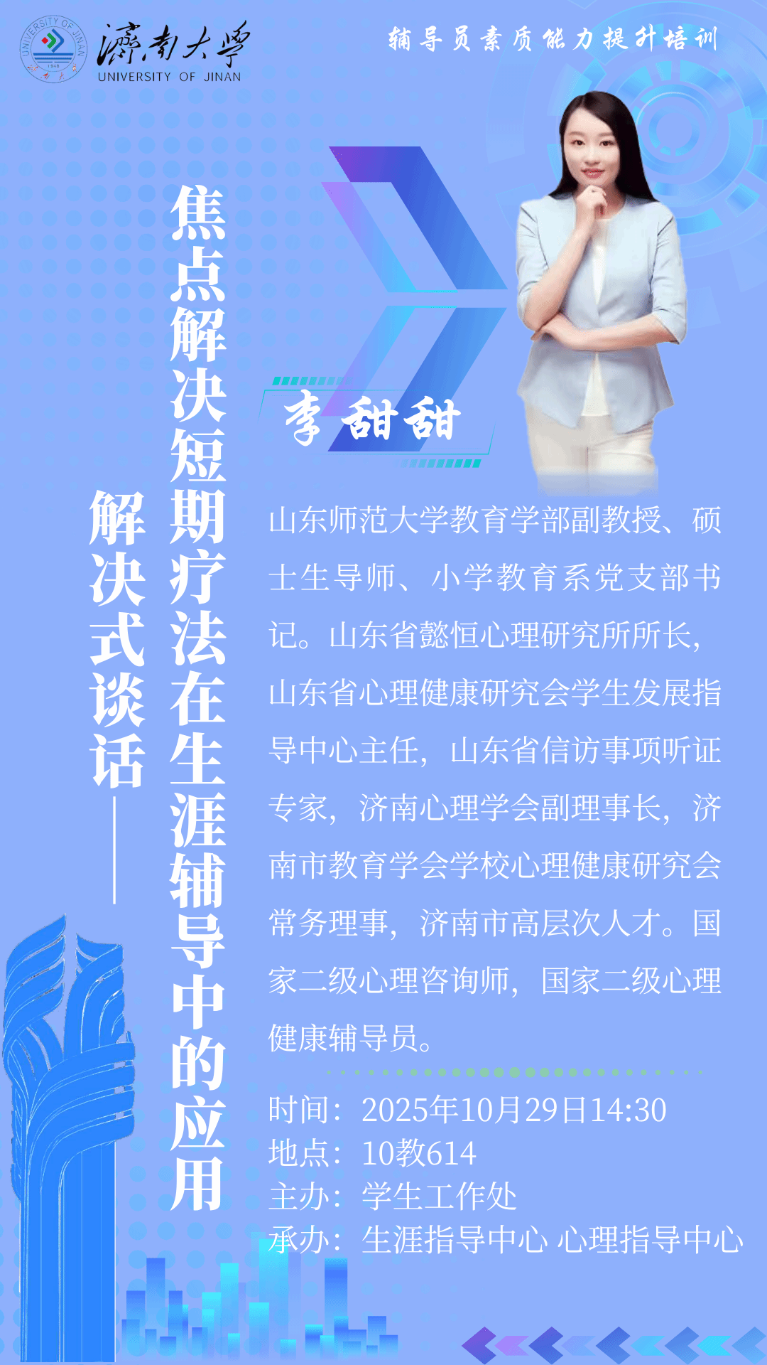 辅导员素质能力提升培训学术海报:解决式谈话——焦点解决短期疗法在生涯辅导中的应用