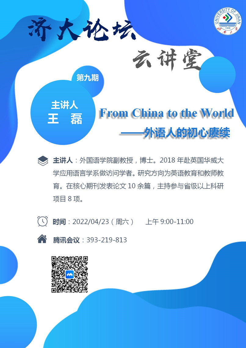 best365论坛“云讲堂”第九期:From China to the World ——外语人的初心赓续