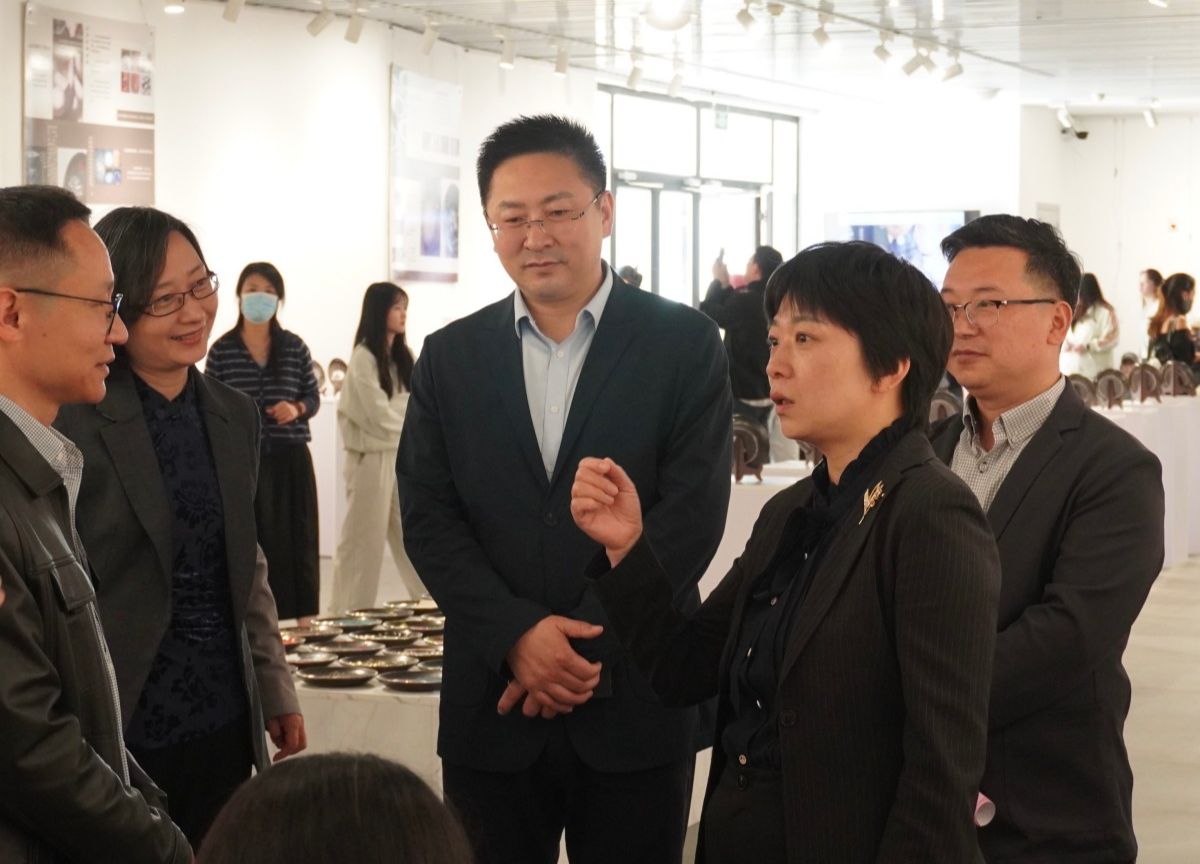 美术与设计学院党委书记陈春锋在介绍展览时谈到,本次展品既包含拉坯、雕刻、釉彩等传统工艺的匠心复刻,也不乏融入现代生活美学的创新设计。现场特别设立的“美育实践教学成果墙”,通过创作手稿、课程笔记与成品的对比展示,直观呈现了学生从理论学习到实践应用的提升过程。