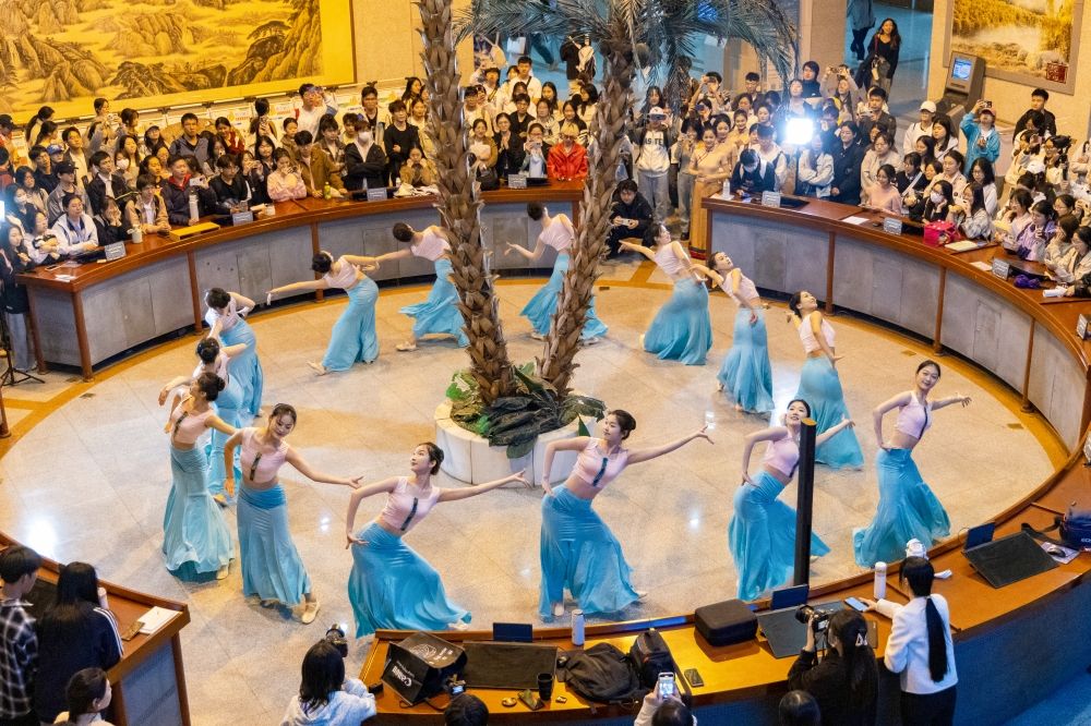 每周总有那么几个晚上,一到闭馆时分,或琴声悠扬,或歌声婉转,或舞姿蹁跹,一场场精心策划、用心编排、形式多彩的闭馆秀演出惊喜闪现,为同学们一天紧张的学习生活画上温馨美好的句点。春之声篇章钢琴、大提琴与声乐联袂演绎《春之歌》《春天的芭蕾》《家》等经典作品,描绘春天的温暖与诗意;“翩迁四季·舞韵书香”舞蹈专场,将《春之韵》的生机勃发,《剑气如虹》 的刚柔并济,《草原随想》的奔放自由表达得淋漓尽致,情感与技术的完美融合赢得满堂喝彩;“诗韵流转·山河入梦”与“键叩书星·字跃灵穹”篇章中,《大鱼》《传奇》《青玉案·元夕》《世界赠与我的》《哈瓦那舞曲》《怪物》等风格各异的作品次第登台,精彩纷呈。图书馆闭馆秀成为了许多同学结束一天学习的期待,每次演出总有众多同学围观打卡,也有很多老师家属校友特意前来。在宁静的阅读氛围中融入艺术元素,让师生在艺术与知识的交融中感受心灵的舒展与美的浸润,美轮美奂,相得益彰。