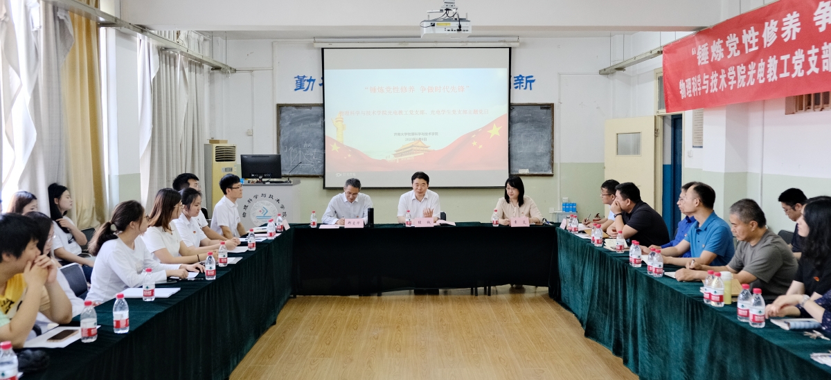 为深入开展学习贯彻习近平新时代中国特色社会主义思想主题教育,全面落实学校党委部署要求,6月6日,物理科学与技术学院光电教工党支部和光电学生党支部联合开展“锤炼党性修养 争做时代先锋”主题党日活动。学校党委常委、纪委书记、省监委驻best365官网中文版登录监察专员续铁出席本次主题党日活动。本次活动由学院党委副书记章岚主持,师生党员代表参加。