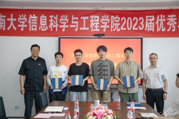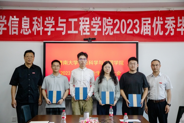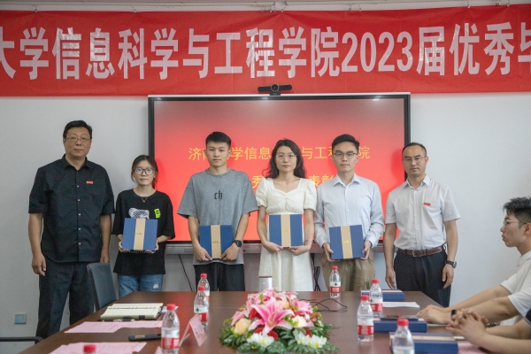 学院院长陈贞翔宣读《关于表彰信息科学与工程学院2023届毕业生的决定》,对学院优秀毕业生、升学、考公、就业先进个人等学生进行了表彰。并对毕业生们走向新的就业岗位、迈入新的学府、开启一段崭新的奋斗旅程表示诚挚的祝愿。同时希望同学们勇于创新突破,贡献作为,抢抓机遇,有勇于探索创新的劲头,在不断尝试中前进,在服务人类共同理想中实现个人价值。随后,学院领导为优秀毕业生颁发了纪念奖品,并合影留念。